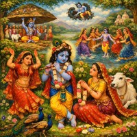 The Yamuna River is central to Krishna’s leelas, such as lifting Govardhan Hill. Pilgrims bathe in its waters for spiritual cleansing and meditate by its serene banks.